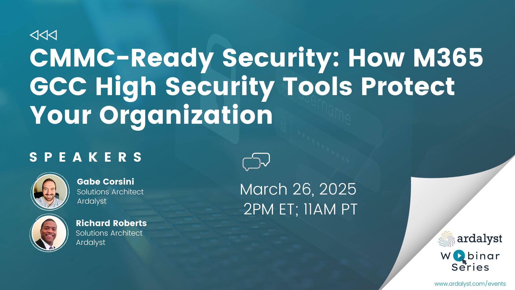 Microsoft's Richard Wakeman joins the Ardalyst Webinar Series with Josh O'Sullivan to discuss the different tools available to help defense contractors meet CMMC/NIST 800-171 compliance.